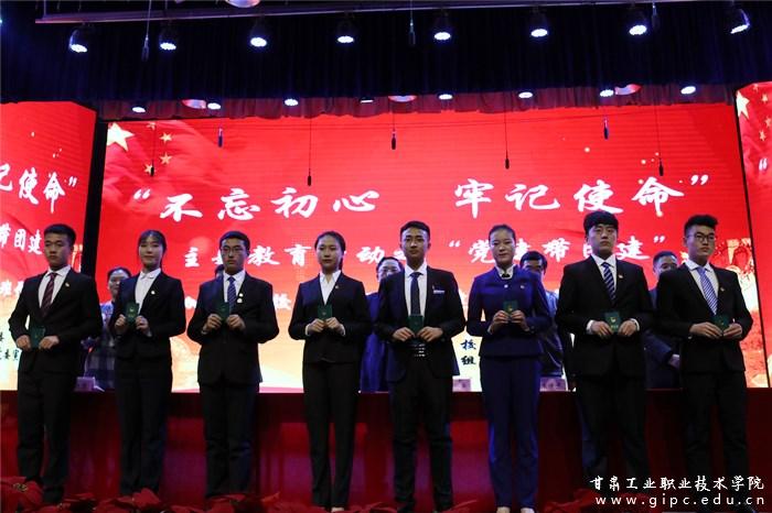 在全体新团员进行入团宣誓、老团员进行重温入团誓词后,与会领导为新团员们发团员证、佩戴团徽,鼓励同学们继续努力,更进一步向党靠拢看齐。