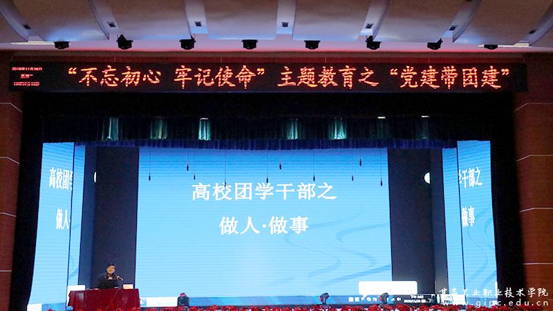 11月26日,我校“不忘初心 牢记使命”主题教育活动之“党建带团建”暨加强基层团组织建设培训班第二讲开课,校党委副书记郭建忠主讲。