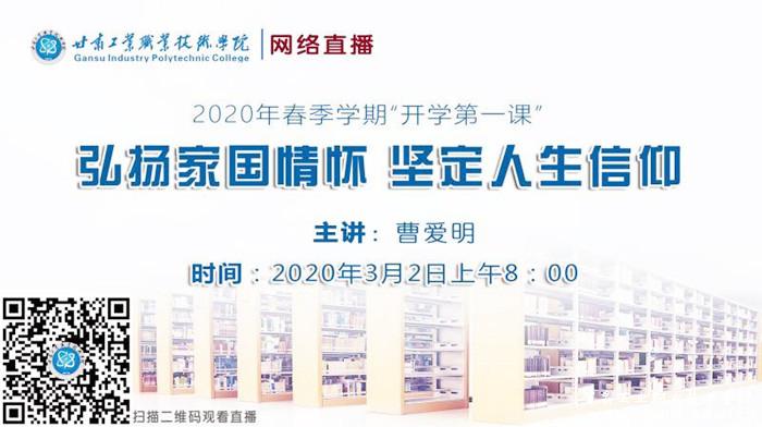 停课不停学,“云端”新学期。3月2日,是甘肃工职学院正式开启网络教学的第一天。上午8点,学校党委副书记、校长曹爱明以“弘扬国家情怀 坚定人生信仰”为主题,在中国大学MOOC平台开启了我校2020年春季学期“云端”教学第一讲,据数据显示,参与直播的人数峰值达到4400余人。