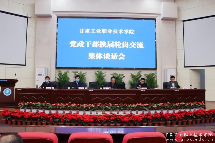 为优化干部队伍结构,加强干部队伍建设。3月27日下午,校党委在图书馆5楼报告厅召开党政干部换届轮岗交流集体谈话会。校党委书记杨声、校长曹爱明、党委副书记郭建忠、纪委书记潘文生出席会议,全体换届轮岗交流与新提拔任职的干部参加。会议由党委书记杨声主持。