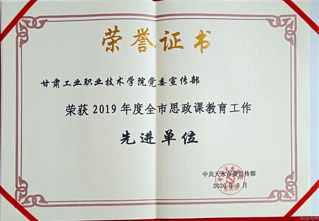 3月13日,2019年度天水市宣传思想工作会议召开,会上表彰了2019年度天水市宣传思想工作先进县区、单位的决定。我校荣获“2019年度天水市宣传思想工作先进单位荣誉称号。