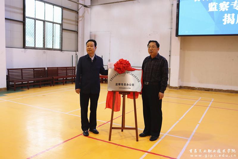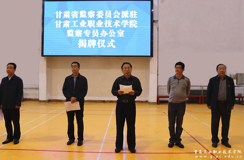 5月7日上午,甘肃省监察委员会派驻甘肃工业职业技术学院监察专员办公室揭牌仪式在学校体育馆举行。学校在家党委班子成员、纪委委员、各党总支、直属支部书记、各职能部门负责人、纪检监察室新配人员参加了会议。揭牌仪式由校党委副书记、校长曹爱明主持。