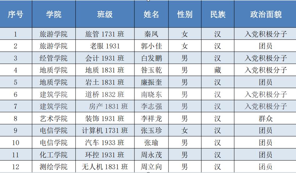 甘肃工业职业技术学院“优秀大学生防疫志愿者”表彰名单(排名不分先后)