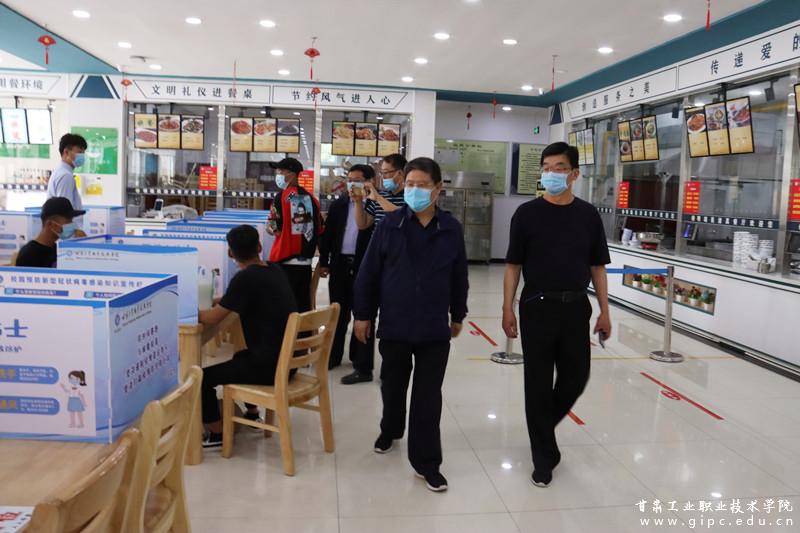 会后,调研组实地检查了学校校园封闭管理、消毒消杀防疫、学生宿舍管理、食堂管理、校园疫情管控、体温检测防控等工作的落实情况。
