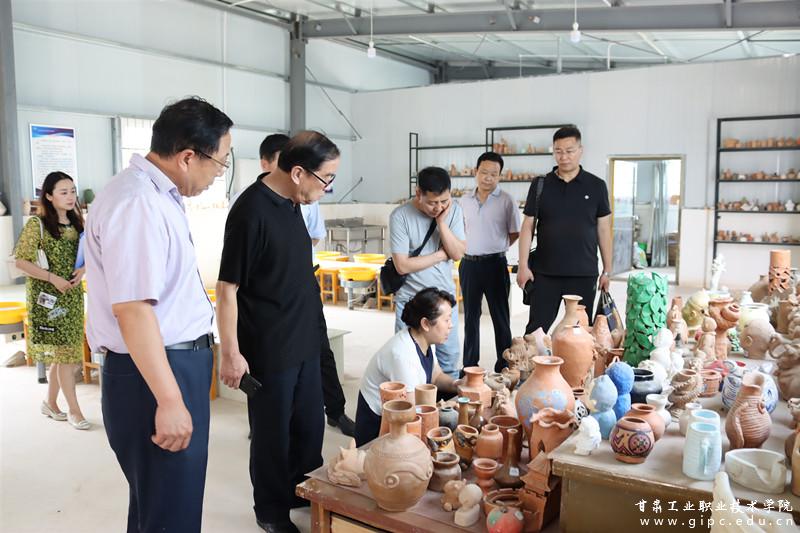 22日下午三点,省教育厅专家组一行在校党委书记杨声、纪委书记、监察专员潘文生、艺术学院院长张学文的陪同下实地参观了彩陶制作实训室、彩陶孵化园、刺绣工作坊和在建的彩陶产业园等教育教学场所。
