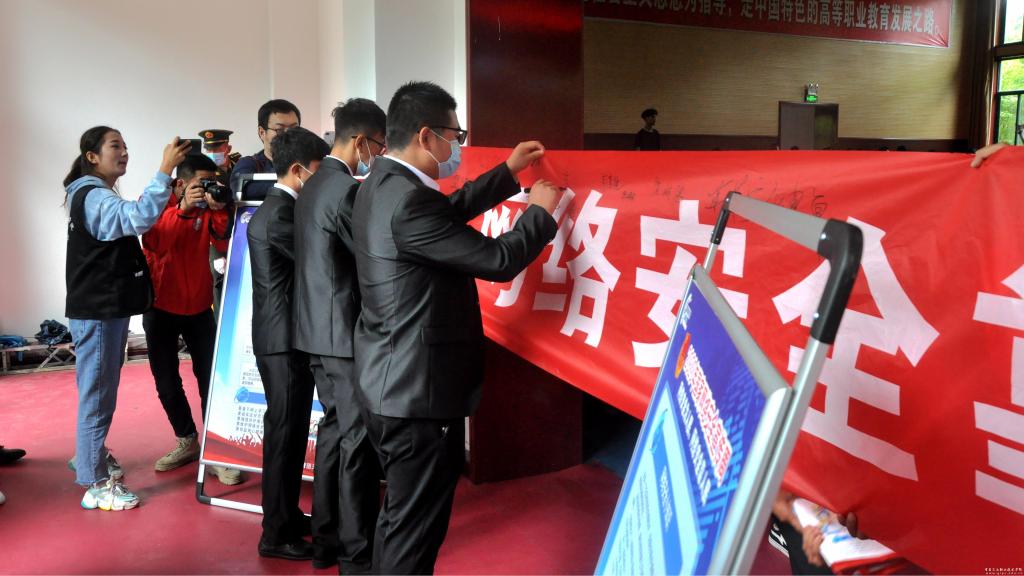 活动现场,团市委、校团委通过组织签名活动和发放宣传资料向在校师生宣传网络安全知识及防诈骗知识。学校师生热情主动地在横幅上签下自己的名字以示网络安全铭记于心。