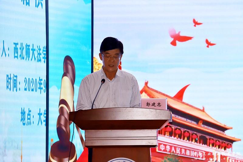 最后,党委副书记郭建忠做总结讲话,首先代表全院师生感谢杜教授为大家带来的精彩报告,他指出,全校上下要以民法典颁布实施为契机,深入学习宣传贯彻民法典,进一步树牢法治思维,切实加强依法治校,宣传普及法律知识,加快学校治理体系和治理能力现代化建设,推动学校高质量跨越式发展。并就全院师生进一步学习宣传《民法典》提出三点要求,一要深刻认识制定民法典的重大意义,把民法典的立法精神和价值追求运用到推动学校“双高计划”建设之中,认真做好“十四五”规划编制工作,加强学校制度体系建设,系统推进依法治校以及学校治理体系和治理能力现代化建设。二要广泛开展民法典的宣传普及工作,将民法典作为思想政治理论课程和相关学科专业课的重要内容,积极推动民法典相关内容“进课堂、进教案、进头脑”。各部门要组织开展理论学习,深刻理解民法典的核心要义和精神实质,强化法治思维与理念,切实提高运用民法典维护师生权益、化解矛盾纠纷、促进校园和谐稳定的能力和水平,自觉将法治精神贯穿于办学治校的各个领域和环节,推动学校快速健康发展。三要将《民法典》学习深入到学生中去,校团委要结合学生社团工作,引导广大学生带头做学法、守法、维护民法典的表率,为民法典的正式实施夯实普法基础,营造良好的社会环境。