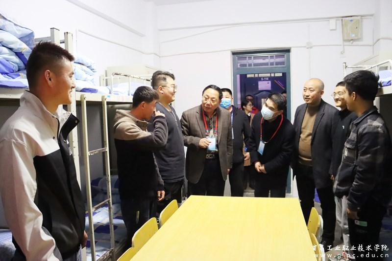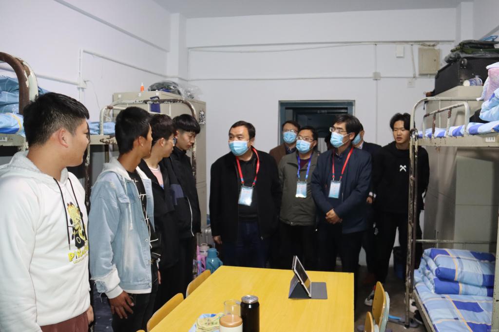 10月13日下午7点,校党委书记杨声、院长安建平及校党委其他班子成员带队深入2020级新生学生公寓开展走访慰问活动,了解新同学的生活和住宿情况。党政办公室、学工处、各二级学院负责人及学生辅导员陪同。