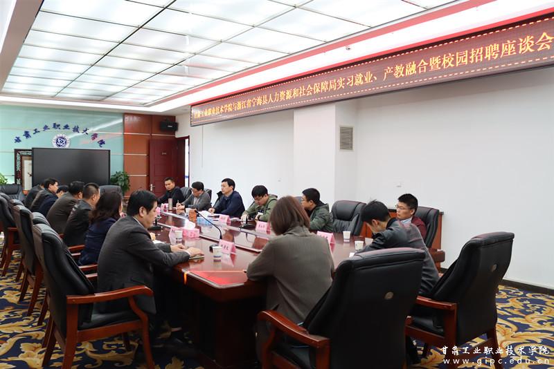 10月23日下午,宁海县人力资源和社会保障局党委副书记、副局长周必正一行来我校进行考察、交流、洽谈校地合作等相关事宜,并在新图书馆4楼会议室举行了座谈会。校党委书记杨声出席会议,党政办公室、就业培训中心及相关二级学院的负责同志参加了会议。