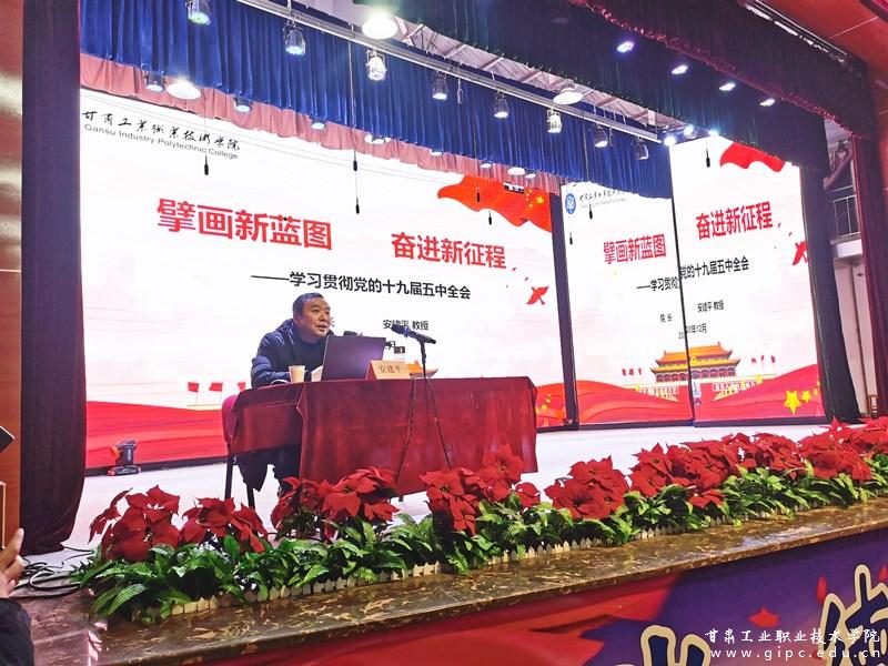 安建平教授以“擘画新蓝图 奋进新征程”为题,从“十九届五中全会召开的背景、深入贯彻党的十九届五中全会精神、学校十三五期间取得的成果、开启学校高质量发展新征程”等四方面,结合我校实际和职业教育改革发展机遇,对全会精神进行了系统阐述和讲解辅导。