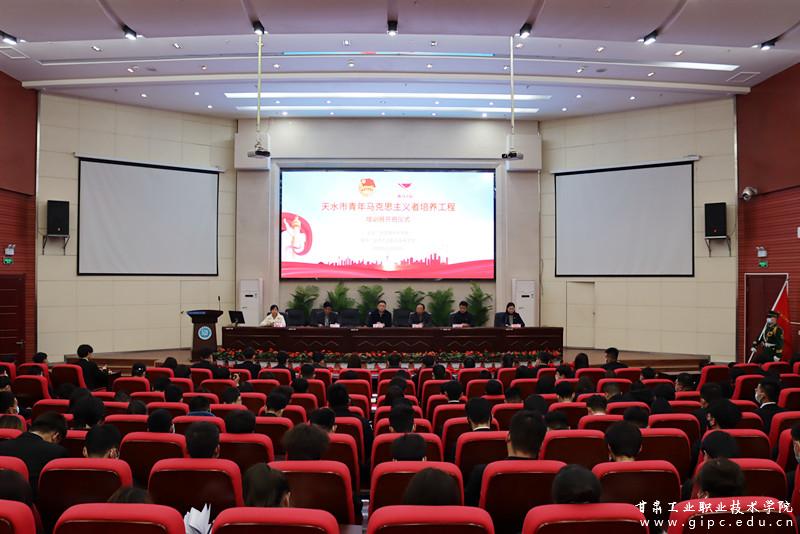 在深入学习贯彻党的十九届五中全会精神之际,2020年天水市“青年马克思主义者培养工程”培训班暨我校第16期青马工程培训班开班仪式于12月18日在图书馆智敏学术报告厅举行。共青团天水市委书记李海巴、副书记赵强、宣传部部长师伟,校党委书记杨声、副书记郭建忠出席仪式,全体青马培训班学员、学生入党积极分子和团员学生代表参加仪式。开班仪式由团委书记黄晓慧主持。