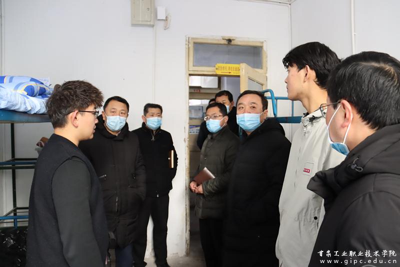 为贯彻落实甘肃省教育厅关于认真做好寒假前后高校疫情防控工作的最新部署精神,1月11日上午,校党委书记杨声、院长安建平带队督导检查校园疫情防控工作。疫情防控办公室、学工处、国资与后勤处、保卫处等部门主要负责人陪同检查。