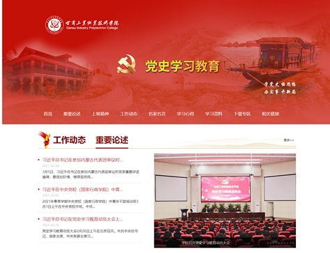3月20日,我校党史学习教育专题网站正式开通并上线运行。党史学习教育专题网站是我校贯彻落实党中央和省委、省委教育工委党史学习教育动员大会精神,依托线上平台方便广大党员干部随时随地学习党史,宣传党史学习教育开展情况及好经验、好做法的集中展示平台。专题网站下设置“重要论述”“上级精神”“工作动态”“名家名言”“学习心得”“学习资料”“下载专区”“相关链接”等8个栏目。