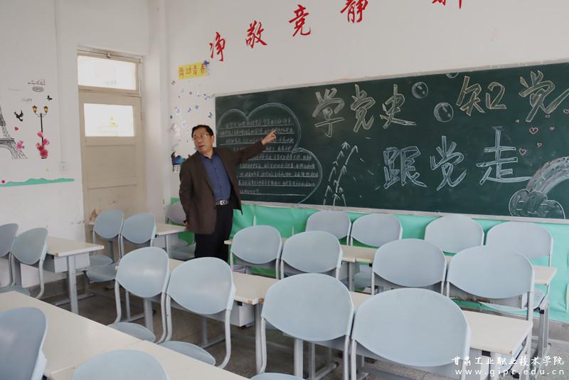 4月1日上午,校党委书记杨声在宣传统战部负责人、各二级学院辅导员以及学生代表的陪同下,对各班级党史学习教育宣传板报进行了检查。