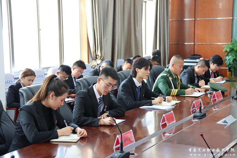 最后,杨声向与会学生提出了三点希望。一是务必在学校学好专业知识、训练好专业技能,在2035年远景目标实现之时,各位同学正值盛年,要切实担当起报效祖国之重任;二是务必要培养良好的行为习惯,锻造优秀的思想品德,为个人成长成才奠定重要的基础,用自己的实际行动践行社会主义核心价值观;三是学工处、团委要联合各二级学院以纪念建党100周年为契机,创新方式方法,丰富形式内容,做深做实党史学习教育,形成人人参与、自我充实、主动提高的良好学习风气,以优异的成绩迎接建党100周年。