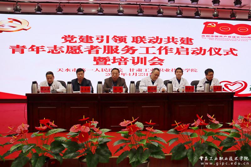 4月24日,甘肃工业职业技术学院与市第一人民医院举行“党建引领、联动共建----青年志愿者服务工作启动仪式暨培训会”。学校党委书记杨声、市第一人民医院党委副书记、院长王定新、党委委员、纪委书记杨云东、党委委员、副院长王哲民、陈江鱼出席仪式,学校学工处、团委负责人、团员代表、学校志愿者、医院志愿者代表等200余人参加了活动。活动由市第一人民医院副院长陈江鱼主持。