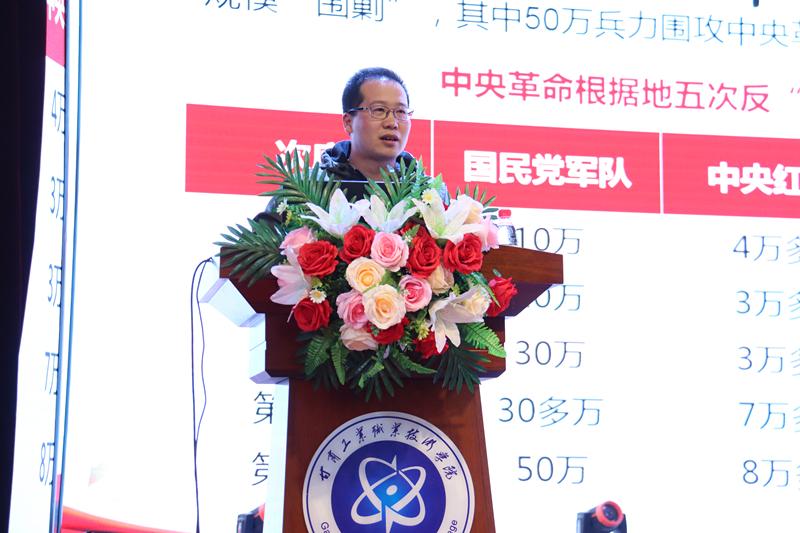 最后,特邀马克思主义学院“毛泽东思想和中国特色社会主义理论体系概论”教研室主任于欣荣老师,围绕党史为广大师生上了一堂题为《长征是永恒的英雄史诗》党课。