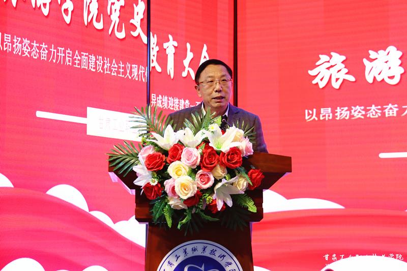 在党史学习教育工作推进会上,旅游学院党支部书记曹瑞琴就如何学好党史这门“必修课”,分别从“为什么学”“学什么”“如何学”三个方面与广大师生进行了交流。党支部纪检委员李玉林对旅游学院党史学习教育的总体要求、学习内容等方面进行了详细的工作安排。