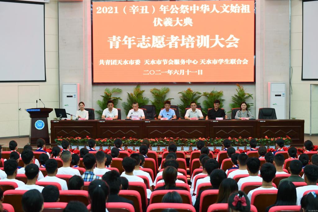 6月11日,2021(辛丑)年公祭中华人文始祖伏羲大典青年志愿者培训大会在甘肃工业职业技术学院举行,学校党委副书记郭建忠、团市委相关领导、节会办负责人出席大会,我校80名青年志愿者参加培训。