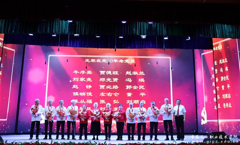 伴随着大合唱《没有共产党就没有新中国》,文艺汇演正式拉开序幕。会中举行了隆重的表彰仪式。与会校领导共同为“光荣在党50年”老党员颁发了纪念章,为受表彰的优秀共产党员、优秀党务工作者和先进基层党组织颁发了荣誉证书。