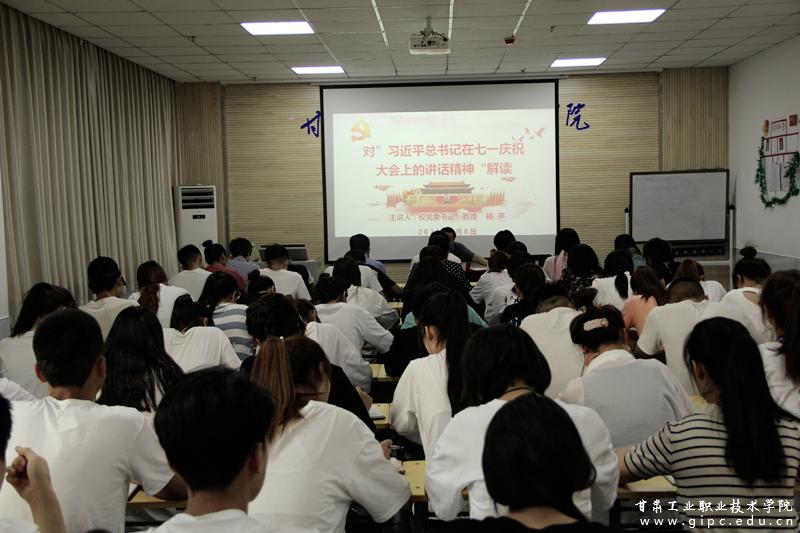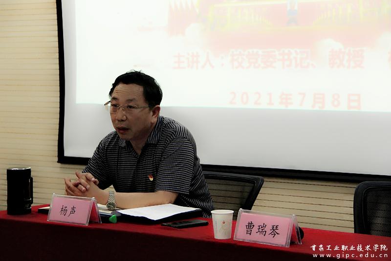 杨声讲到,习近平总书记在庆祝中国共产党成立100周年大会上的重要讲话,铺展建党一百年来在理想照耀下扭转民族命运、书写人间奇迹的历史画卷,展现了党一百年来在奋斗、担当、牺牲、奉献中熔铸的伟大精神,向全党发出了踏上第二个百年奋斗目标新的赶考之路的伟大号召,为党、为国家、为中华儿女标定了走向未来的发展航向。他指出,全院师生要以“优质校”“双创50强”为契机,努力拼搏、攻坚克难,全面推进学校“双高”建设、“提质培优”、“技能甘肃”高水平高质量发展的新征程。