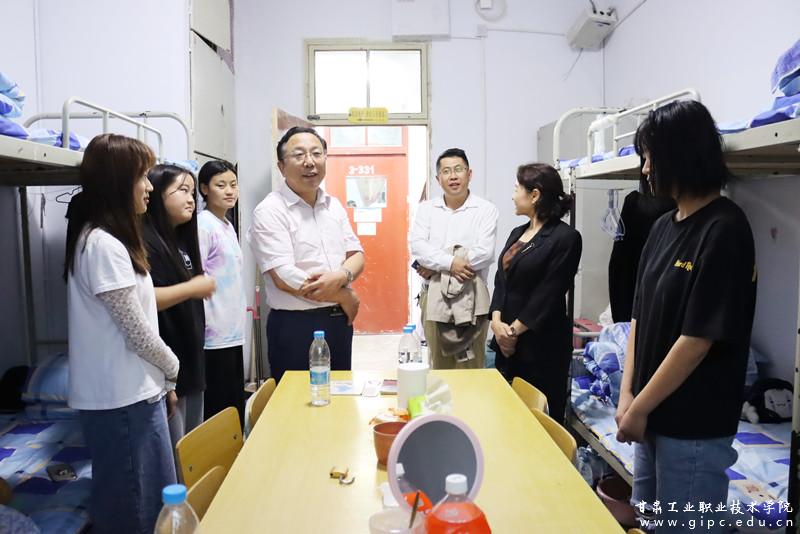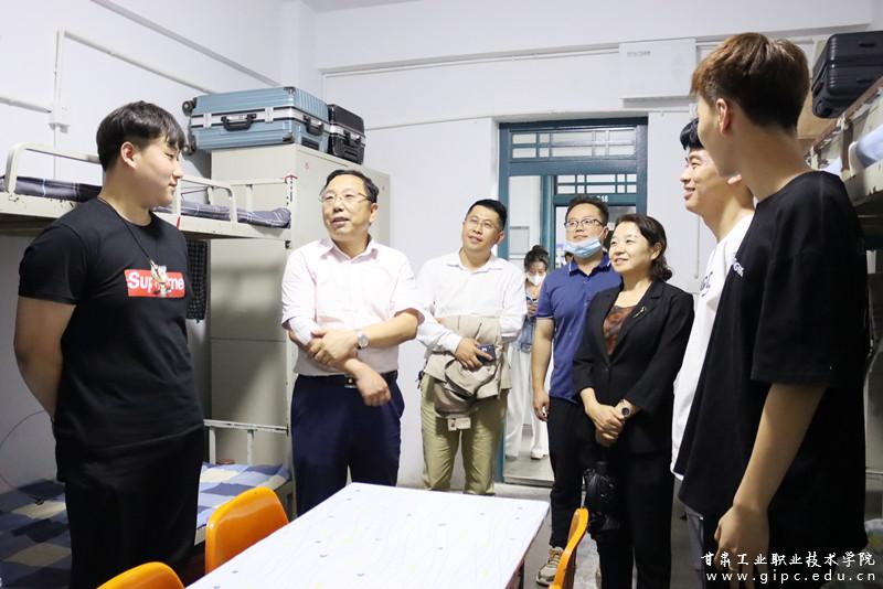 “从哪里来?选择了什么专业?气候能否适应?室友间是否已经熟悉?”每到一个宿舍,学校领导都悉心询问同学们的学习、生活情况,还不断亲切的与同学们交流兴趣爱好,鼓励同学们好好学习,夯实专业基础,培养自己的一技之长,珍惜时光,提升自我。