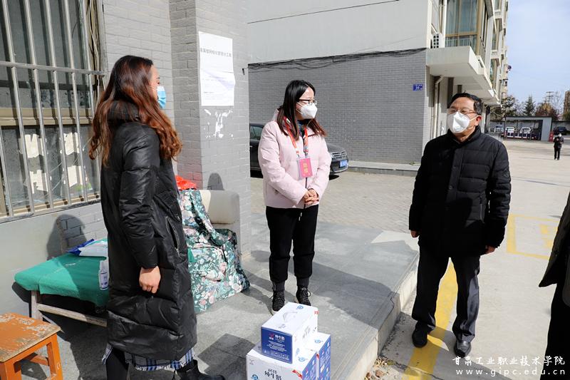 11月8日,校党委书记杨声,党委副书记、院长安建平,副院长曹惠清带领相关部门负责人深入疫情防控工作一线,亲切慰问了党员先锋岗、物业、餐饮、宿管、安保等防控一线工作人员,并将慰问品送到他们手中,将社会各界的爱心和学校党委、行政的关心送到每位疫情防控一线工作人员身边。