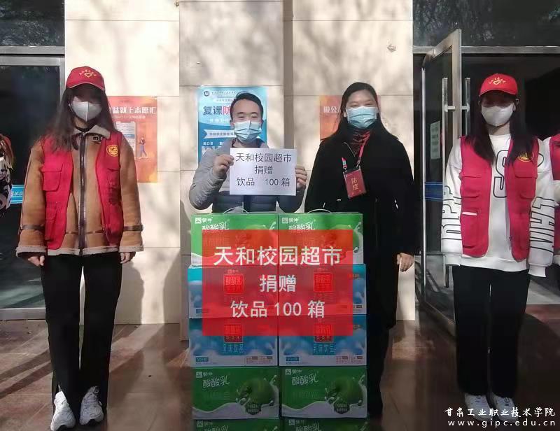 收到兰州大学深圳校友会、兰州大学天水同仁文化旅游促进会、天水66号文化创意园捐赠爱心物资口罩10万只;爱心企业天水锦亿汇商贸有限公司捐赠物资医用防护服60套、医用外科口罩8000个、志愿者马甲50件;甘肃国傲工程建设股份有限公司天水分公司经理、我校杰出校友孙军强向校友会捐赠N95口罩1万只,人民币2万元;天合校园超市向团委志愿者捐赠饮品100箱。