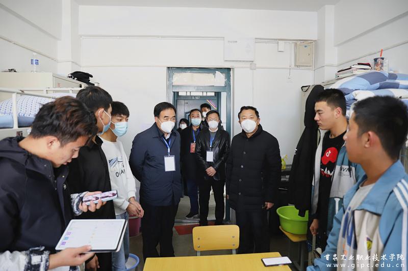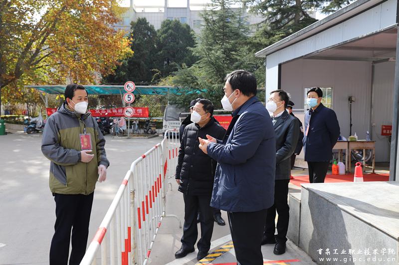 11月8日,省委教育工委专职副书记张晓东、省教育厅高等教育处副处长秦煜世一行调研指导我校疫情防控工作。