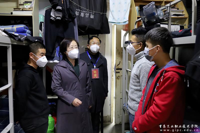 在学生公寓,王海燕询问了同学们线上学习情况,并就封校后生活上的实际困难进行亲切的交谈,针对疫情期间学生可能存在的负面情绪进行了正面引导和心理疏解。她鼓励同学们一定要坚定信心、科学防疫、同舟共济、共渡难关。同时也对同学们提出两点要求,一是希望同学们养成良好的卫生习惯和自律意识;二是倡导大家自带餐具,用餐后自行清洗,将劳动教育融入日常生活。