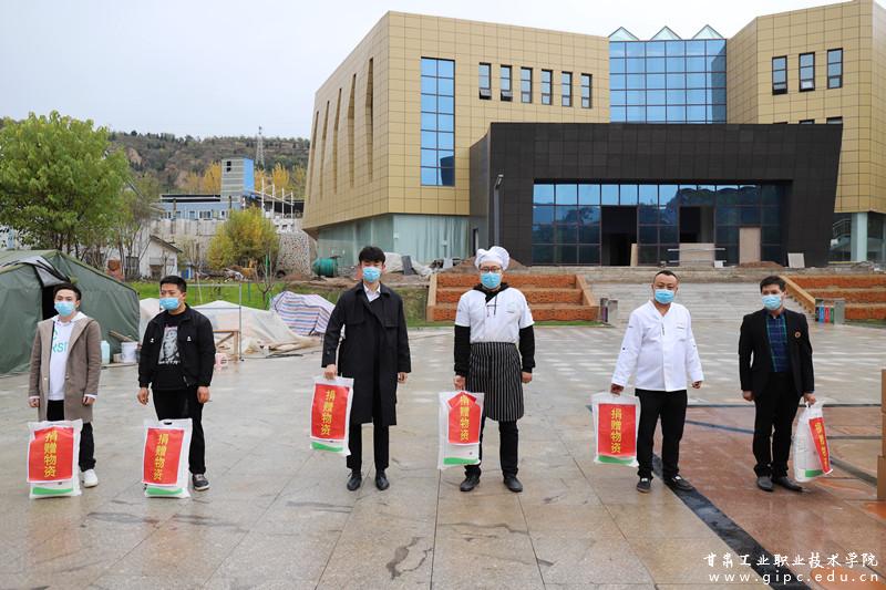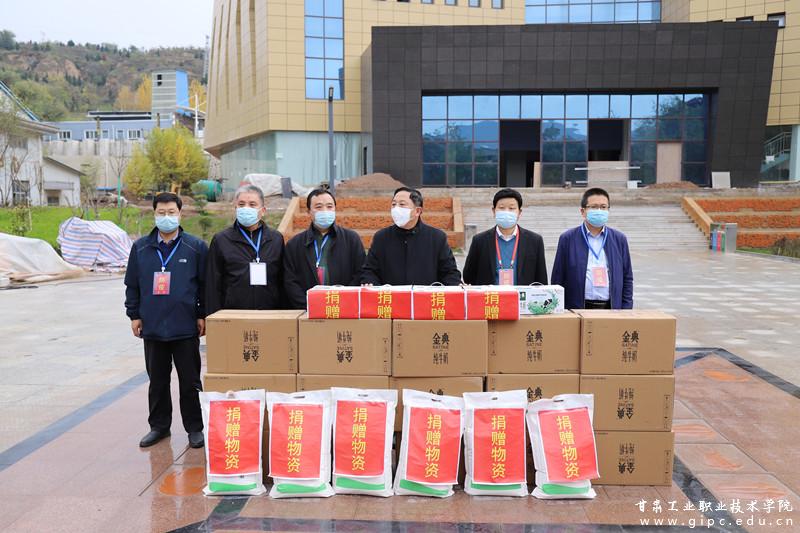 10月30日下午,天水市委市政府为我校捐赠面粉、牛奶等防疫物资,学校本着疫情期间一切从简高效的原则,在彩陶园举行了简单的受赠仪式。