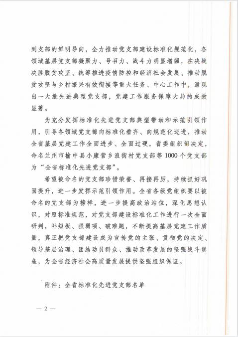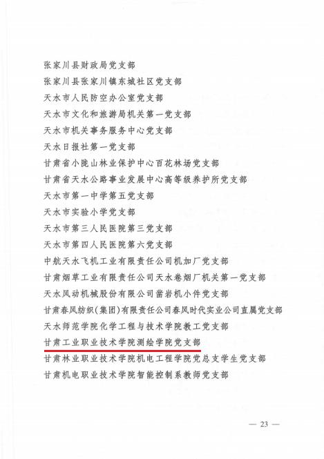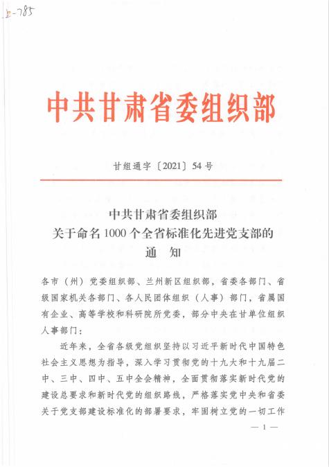近日,中共甘肃省委组织部印发《关于命名1000个全省标准化先进党支部的通知》,对在决战决胜脱贫攻坚、统筹推进疫情防控和经济社会发展、推动脱贫攻坚与乡村振兴有效衔接等重大任务、中心工作中涌现出的1000个标准化先进党支部进行了命名。我校测绘学院党支部喜获“全省标准化先进党支部”荣誉称号。