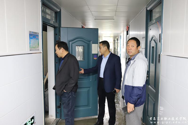 在学生公寓,安建平向公寓管理人员详细询问了学生日常用水、用电、淋浴及公共区域清扫维护等情况,强调要坚决杜绝使用大功率电器和乱拉电线等违规行为,要时刻提醒同学们增强安全用电意识和防火防盗意识,并自觉保持宿舍内部和走廊干净整洁。