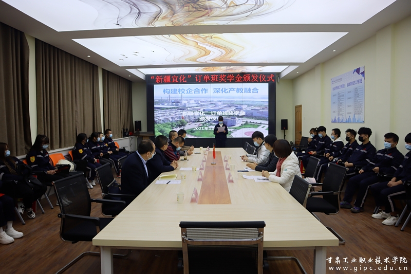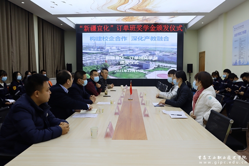 12月15日,新疆宜化订单班奖学金颁发仪式在学校文秘实训室举行。新疆宜化化工有限公司党委副书记方娅兰、副院长王利军出席仪式,就业培训中心、教务处、化工学院等负责人参加了奖学金颁发仪式。仪式由化工学院院长石生益主持。