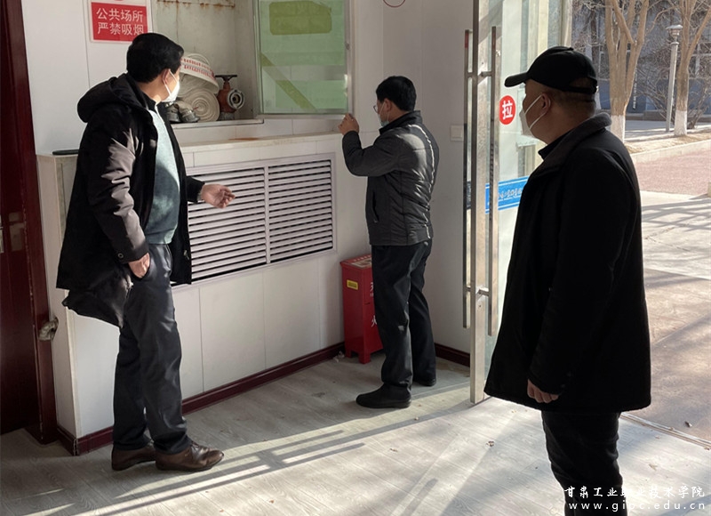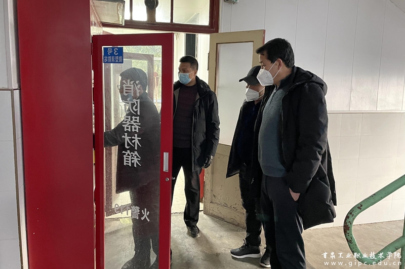 为进一步做好我校今冬明春火灾防控及寒假期间稳定安全工作,1月17日下午,副院长曹惠清带领国资后勤处、保卫处、教务处等部门相关负责人,分三个检查组对校园安全隐患进行全面排查。