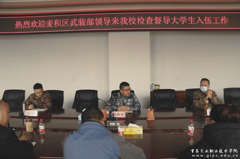 为深入贯彻落实省市两级征兵工作会议精神,激发我校学生参军报国热情,3月1日上午,麦积区征兵办公室在我校图书馆四楼会议室召开2022年春季征兵工作促进会。麦积区区委常委、武装部部长李根来,政委雷鹏英,副部长梅顺安出席会议,学工处副处长韩国杰、校武装部人员和各二级学院毕业班班主任参加会议,会议由校武装部副部长赵卫主持。