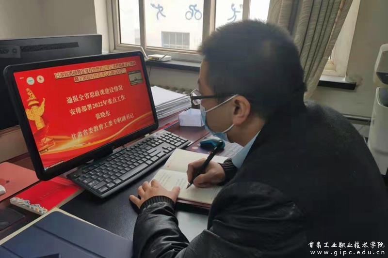 3月18日上午9时至下午6时,马克思主义学院组织思政课教师在线收看甘肃省贯彻落实学校思想政治理论课教师座谈会精神暨全国高校思政课平台建设启动会。学校党委副书记、马克思主义学院院长郭建忠在线上参会。