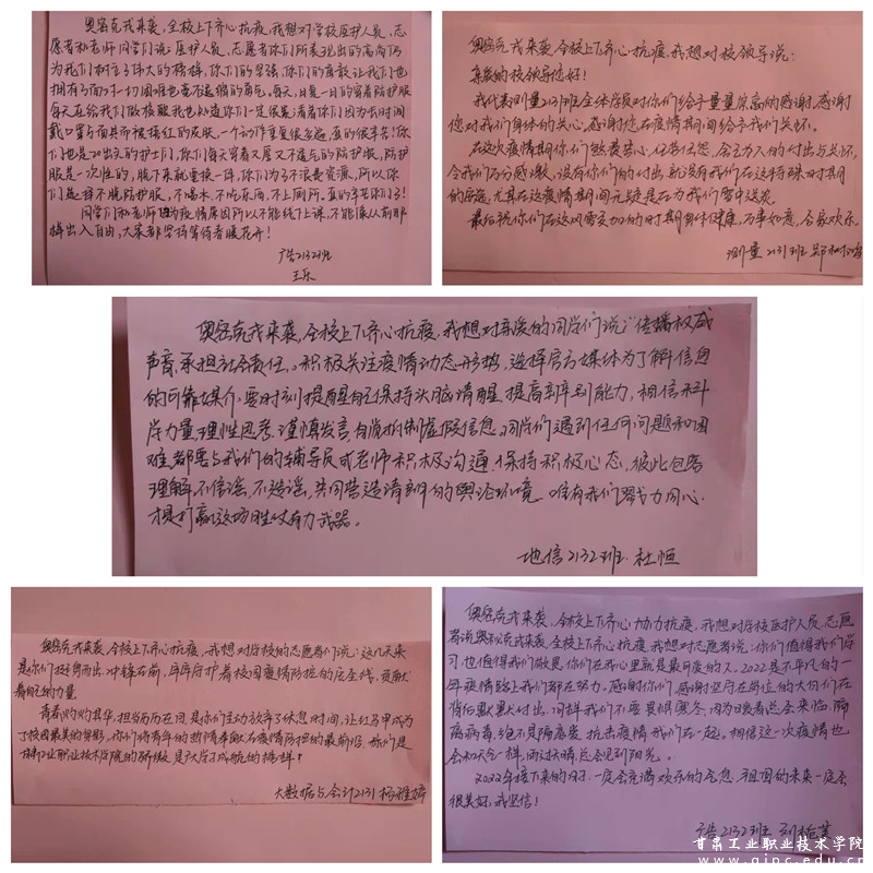 奥密克戎来袭,全校上下齐心抗疫,我想对大学生防疫志愿者们说:在这场突如其来的疫情防控战面前,志愿者们从踊跃报名到始终坚守,从青涩稚嫩到主动担当,守护校园的同时也见证了你们的成长。想叮嘱一句,积极奉献的同时也要注意自身的身心健康;再鼓励一声,你们都是好样的!我愿与你们一起,共克时艰,助力学校打赢这场疫情防控阻击战。