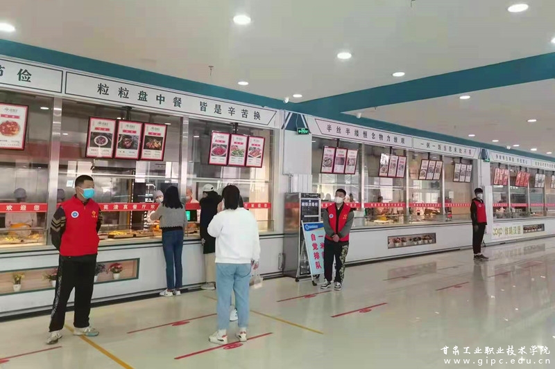 疫情防控工作常态化管理时,各食堂入口就设有一体化体温智能检测设备。在学校封闭管理期间,每天的就餐时段社团联合会志愿者就守在食堂入口体温检测设备处,时刻监测取餐师生的体温情况。食堂内,“同学你好,请出示你的取餐证”“请大家测温进入食堂,佩戴好口罩”“同学们,买饭也要注意安全距离”……每个窗口前都有社联防疫志愿者的身影,进一步保障了食堂就餐的有序进行,切实提高了疫情防控工作的科学性和有效性。