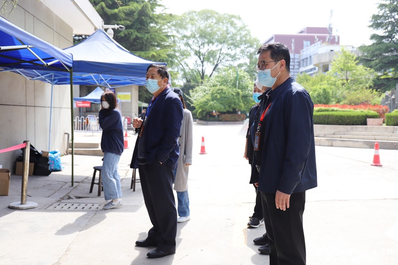 5月1日上午,校党委书记杨声在副院长胡森林,党委统战部、学工处等部门负责人的陪同下,深入学生食堂、学生公寓、快递集中收发处及校门出入口检查“五一”期间学校疫情防控工作。