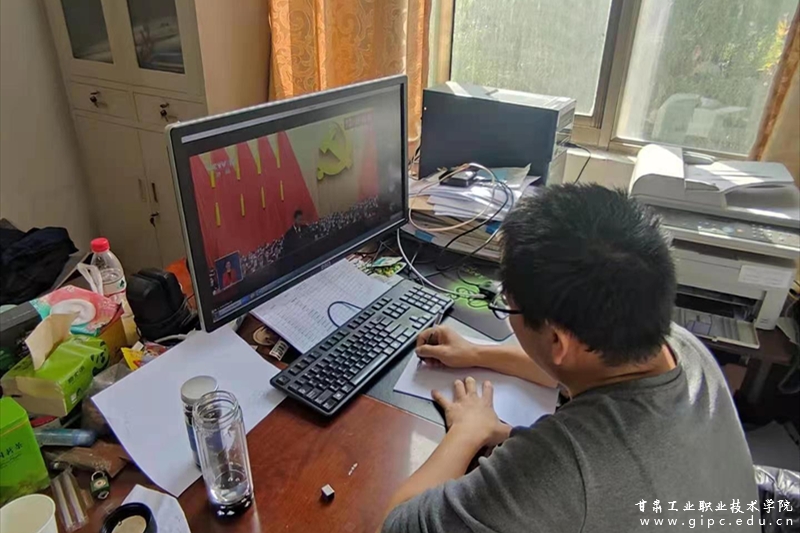 观看开幕会直播中,教辅党支部全体党员聚精会神、认真聆听并记录。大家仿佛置身于大会现场,激动与自豪之情溢于言表,掌声一次次响起。