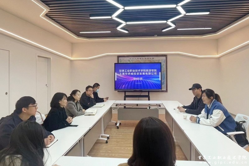 为拓宽学生实习就业渠道,3月13日,旅游学院与上海华侨城投资发展有限公司在导游AI实训室举行校企合作座谈会。旅游学院院长曹瑞琴及相关专业教师参加会议。