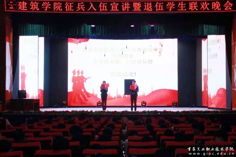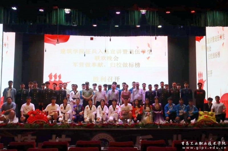 为深入贯彻落实党的二十大精神,加强国防动员和后备力量建设,持续做好退伍学生思想引领和服务保障工作,进一步全面深入做好大学生征兵宣传工作。6月9日晚,建筑学院在大学生活动中心举办征兵入伍宣讲暨退伍学生联欢晚会。学工处处长李东浩、武装部副部长赵卫、建筑学院院长谢延友及其他领导班子成员、建筑学院教师、辅导员、退伍学生,及全体在校学生参加活动。