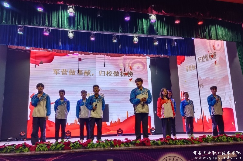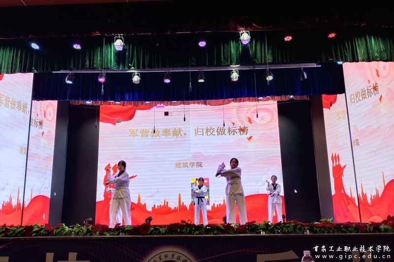 随后,晚会在舞狮表演中拉开序幕。退伍学生的列队展示+合唱,乐队演奏《国际歌》,朗诵《中国少年说》、《与时代同行,与祖国同行》、《短文诗四首》,歌曲《赞歌》,武术《双节棍》、《南刀、南拳、南棍》,舞蹈《丝路幻影》、《维吾尔族姑娘》,合唱《奢香夫人》、《明天会更好》等节目精彩纷呈。晚会现场气氛热烈,掌声不断。