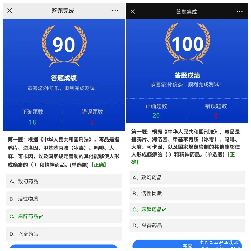 本次答题采取线上答题的方式,内容包括毒品知识、毒品危害、毒品防范、禁毒法律法规、戒毒康复、毒情形势以及预防教育等。此次活动不仅增加了同学们的禁毒知识储备,而且让同学们了解了禁毒的重要性,进一步巩固了毒品预防教育工作成果,达到了以题促学的目的。