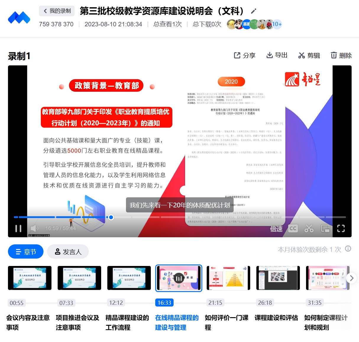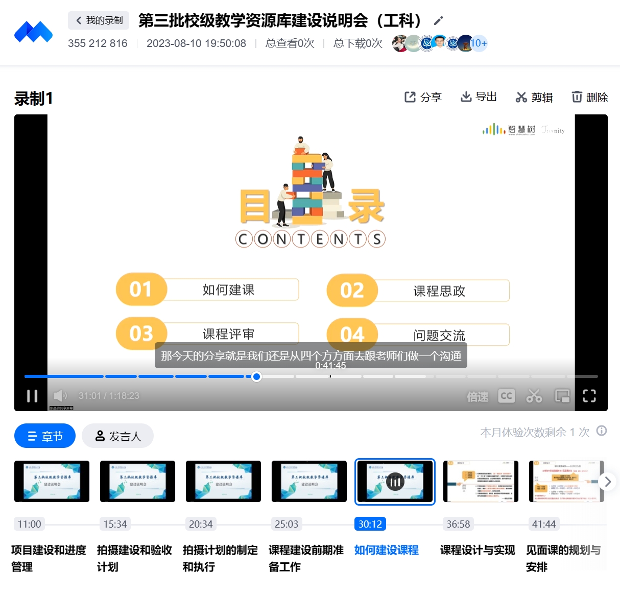 会议分组进行,分别是“第三批校级教学资源库建设说明会(工科)”和“第三批校级教学资源库建设说明会(文科)”。工科组教学资源库建设工作将由智慧树平台全权负责,文科组的教学资源库建设工作则由超星平台负责。在两组的说明会上,各平台针对课程的内容设计、时长要求、线下录制和后期制作等流程进行了全面讲解。旨在为各项目组开展工作提供充足的技术指导和前期准备,确保项目能够顺利实施。