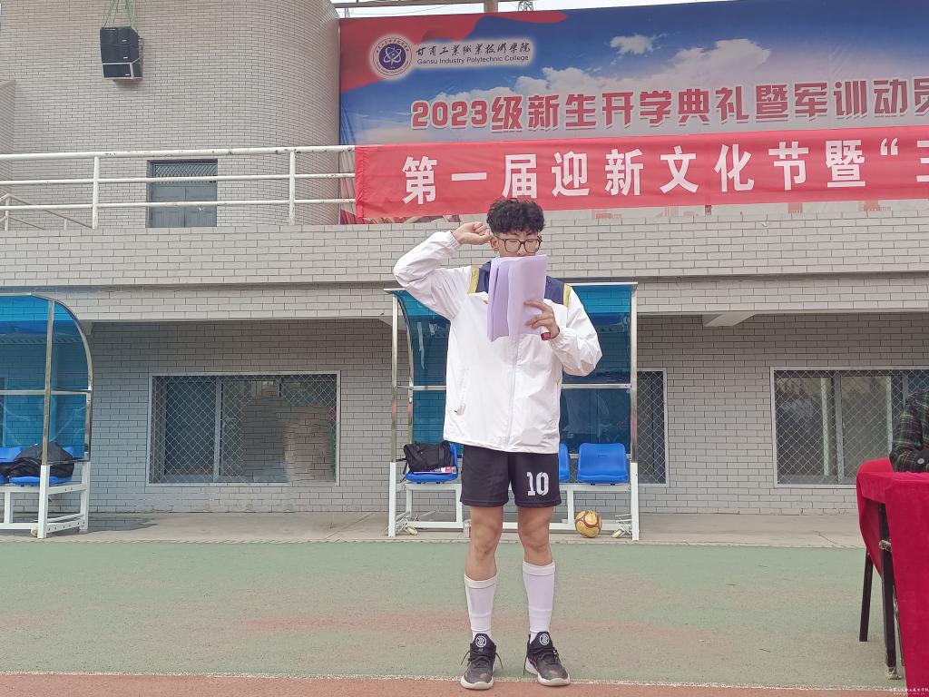 学工处处长李东浩致开幕词。运动员代表桑杰多杰代表全体运动员宣誓、朱星宇代表全体裁判员宣誓。建筑学院党支部书记、院长谢延友宣布甘肃工业职业技术学院第一届迎新文化节“王者雷霆”足球比赛开幕,随着裁判员清脆的哨声,在同学们热烈的掌声和欢呼声中,“王者雷霆”足球比赛正式开始。
