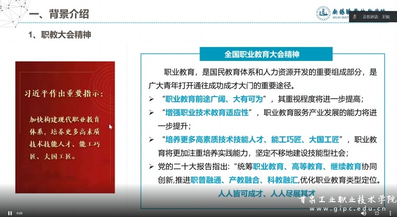 培训中,王骏教授从国家对职业教育的宏观政策层面,聚焦无锡优势产业的中观层面,对在产教融合背景下进行专业升级、专业群建设、课程体系建设、课程教学资源建设、教学设计、课程思政微课和教学评价等微观实践层面进行了详细讲解并与参培教师进行了深入交流,为我校教师提供了可供借鉴的成功范例和典型经验,也带给我们许多深刻的启示,既有理论高度、又有实践深度和广度。