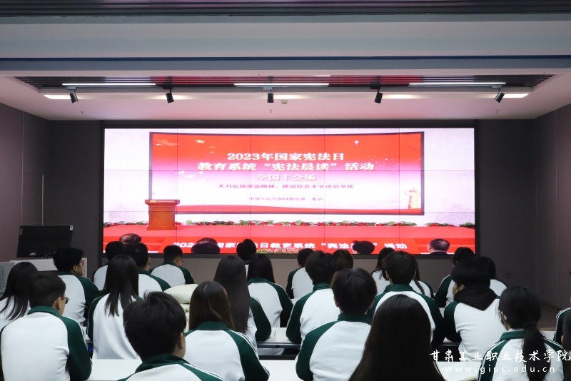 12月4日上午9:30,校团委组织各学院无课班级线上观看教育部开展的全国教育系统“宪法晨读”活动,通过网络与全国各地在线互动。跟随主会场师生同步升国旗、唱国歌,一起朗读宪法部分条款,同唱《宪法伴我们成长》,并认真收看了主会场活动全过程。