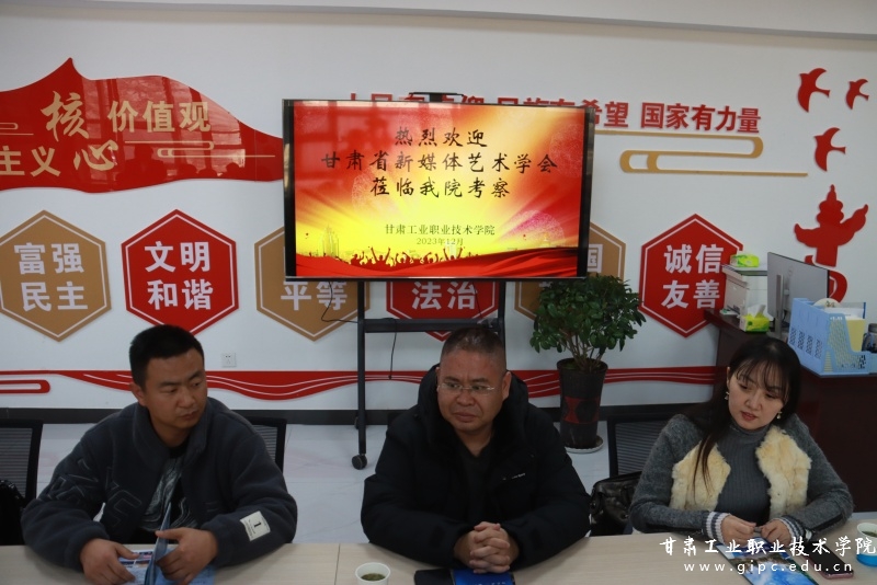 蔡赟介绍了甘肃省新媒体协会的创办历史及发展情况,对我校新媒体工作室的建设发展及艺术学院新媒体艺术相关专业的举办情况做出充分肯定,并表示希望与艺术学院相关专业教师开展更深层次的交流与合作,为我校更好的推进赛教融合、新媒体艺术相关专业建设发展、教师教育教学能力提升等方面提供积极的支持与帮助。
